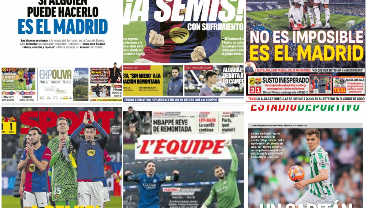 La posible remontada del Real Madrid, el pase a semis del Barça, las vueltas de cuartos de Champions... Así vienen las portadas