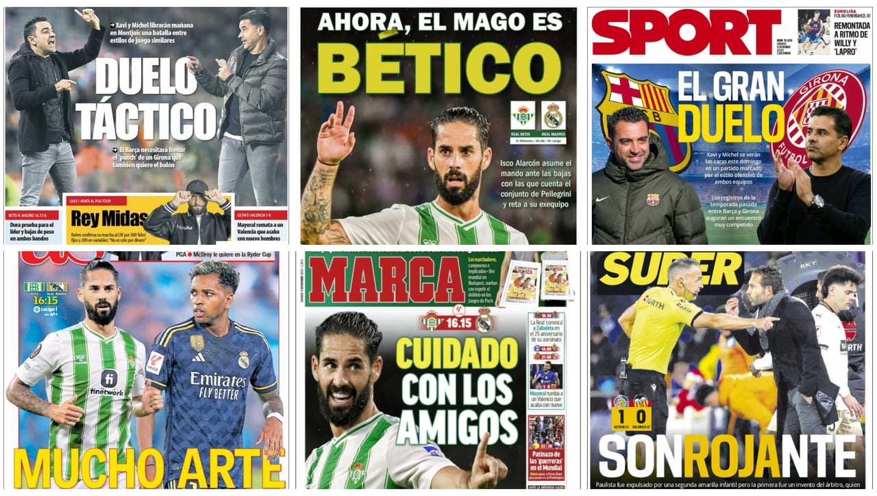 El reencuentro de Isco con el Real Madrid, el duelo Xavi - Míchel, la indignación del Valencia... así vienen las portadas