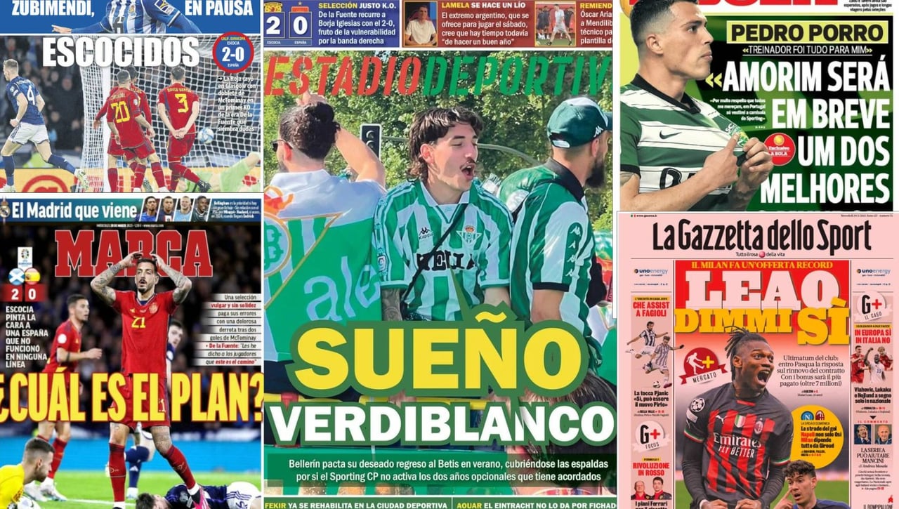 El regreso de Bellerín al Betis, las críticas a Mendilibar, el KO español... así llegan las portadas