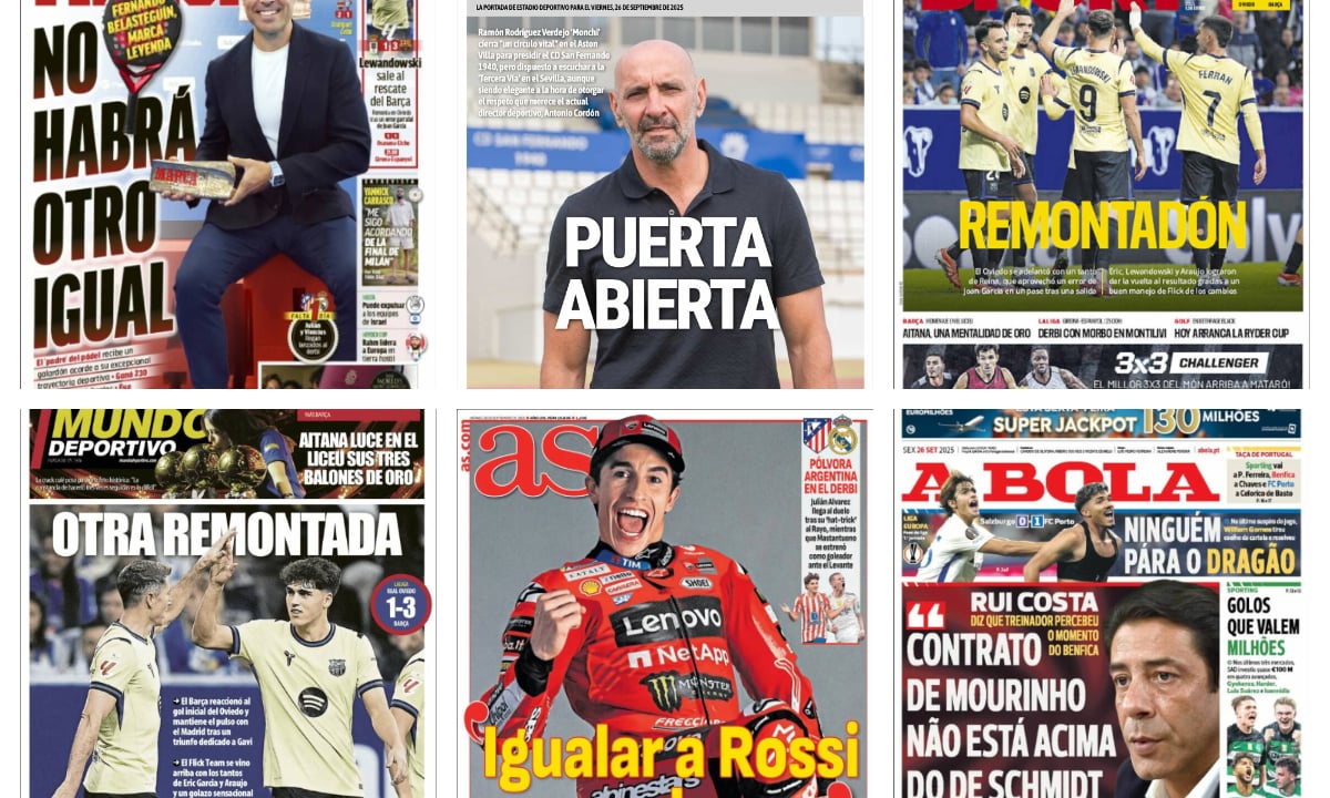 Las portadas deportivas de este viernes 26 de septiembre vienen enfocadas a la lucha por LaLiga donde el Real Madrid no concede margen de error sin embargo, el Barcelona tampoco y es que como la mayoría de años la pelea se mantiene entre estos dos equipos.