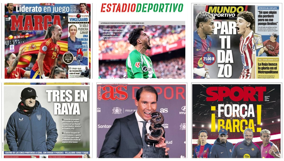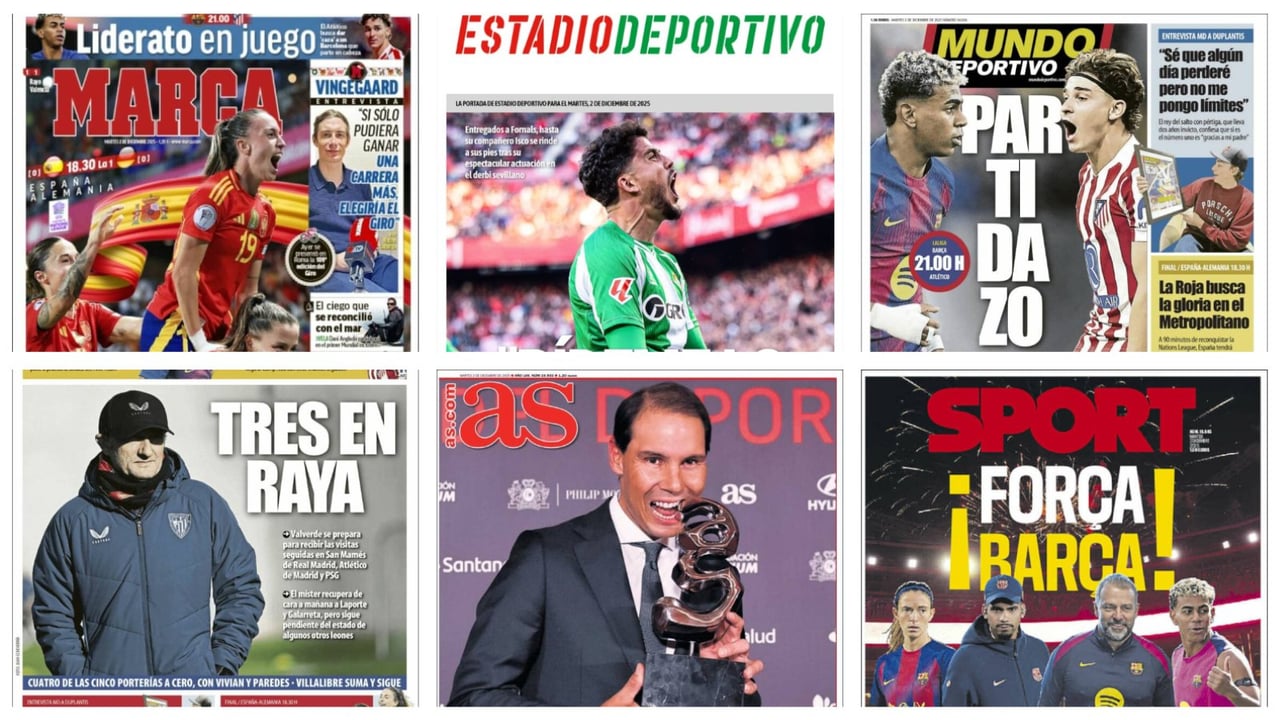 Las palabras de Isco a Pablo Fornals tras el derbi, la final de la Nations League femenina entre España y Alemania en el Metropolitano y el duelo por LaLiga entre el Barcelona y el Atlético de Madrid protagonizan las portadas de la prensa deportiva en España a 2 de diciembre de 2025.