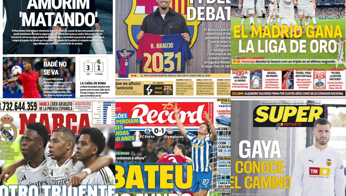 En el plano internacional, L'Equipe por ejemplo, abre con Wembanyama y la NBA. En Italia, la Gazzetta dello Sport, abre con Milan e Inter, que están clasificados entre los ocho mejores de Europa en la Champions y probablemente consigan la clasificación directa a octavos de final de la máxima competición continental. En Portugal, O'Jogo, abre con la derrota del Porto en Europa League ante Olympiacos.