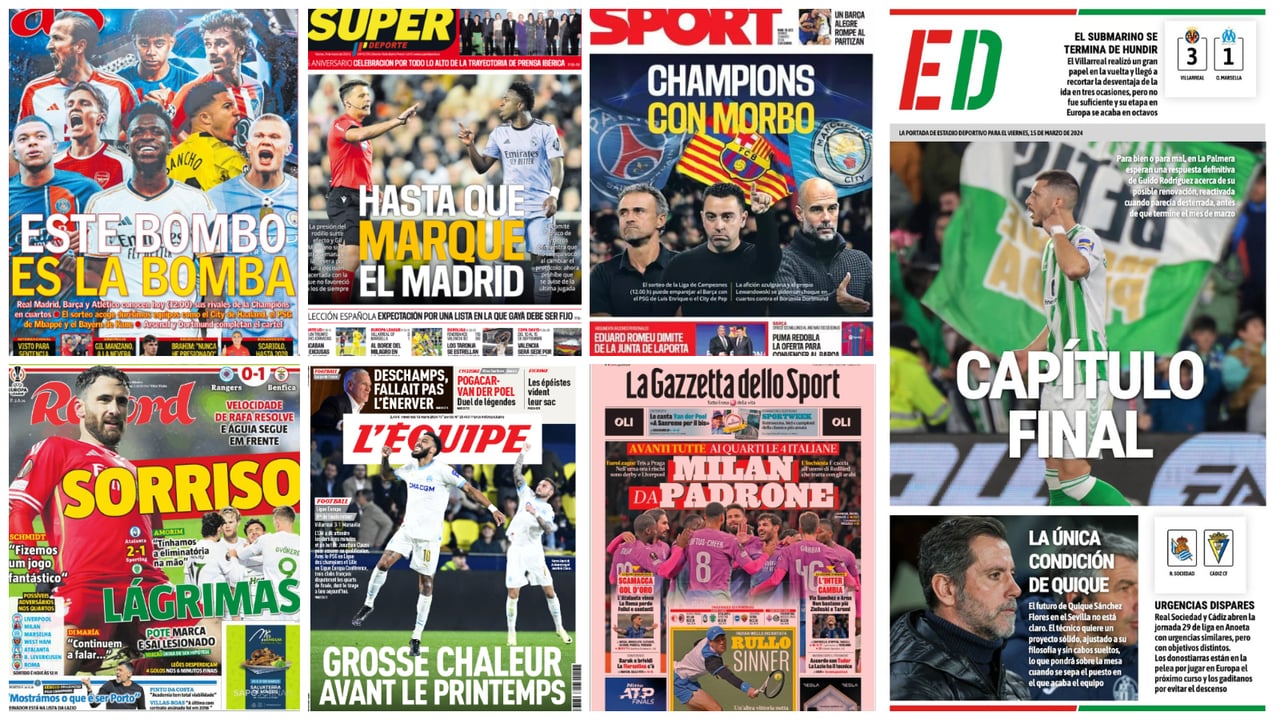 Respuesta de Guido, condición de Quique, sorteo Champions, 'neverazo'... portadas del viernes 15 de marzo 2024