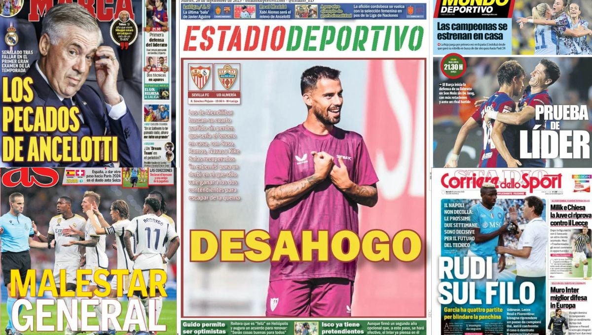 El reto del Sevilla, el futuro de Isco y Guido, Ancelotti, Rudi... así llegan las portadas