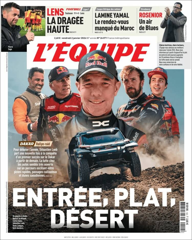 La Gazzetta Dello Sport abre con la nueva dupla ya en funcionamiento en el Milan de Rafael Leao con Fullkrug, mientras que L'Equipe abre con el próximo Dakar que se avecina y con la posibilidad de Rosenior en sustituir a Maresca en el Chelsea.
