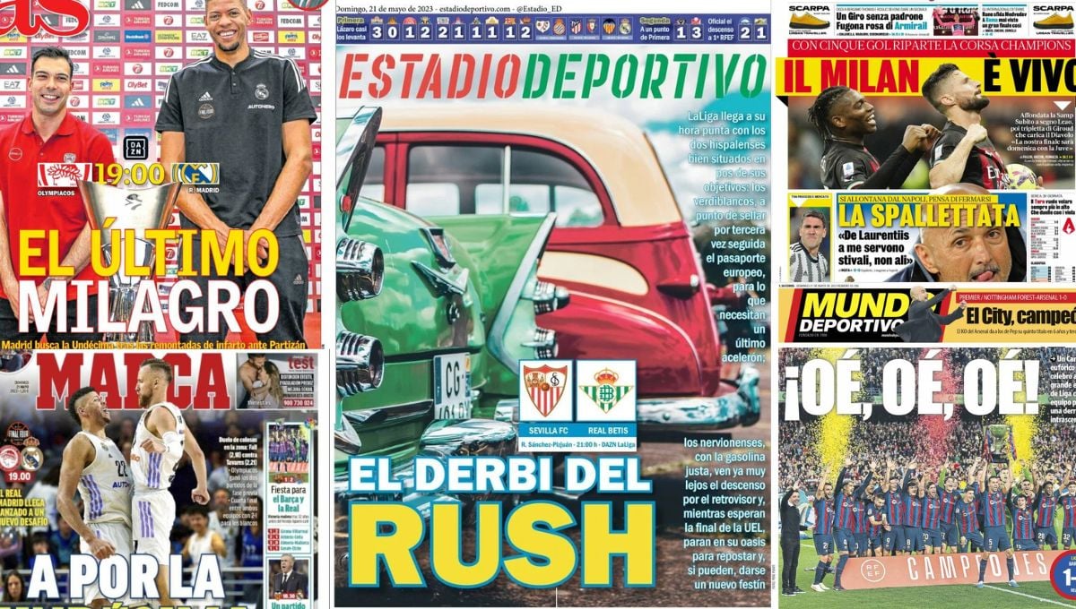 Así llegan este domingo 21 de mayo de 2023 las portadas de los diarios deportivos.