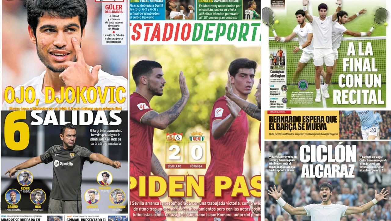 El Sevilla se estrena con victoria en su primer amistoso de verano, Carlos Alcaraz se mete en la final de Wimbledon con un tenis maravilloso...