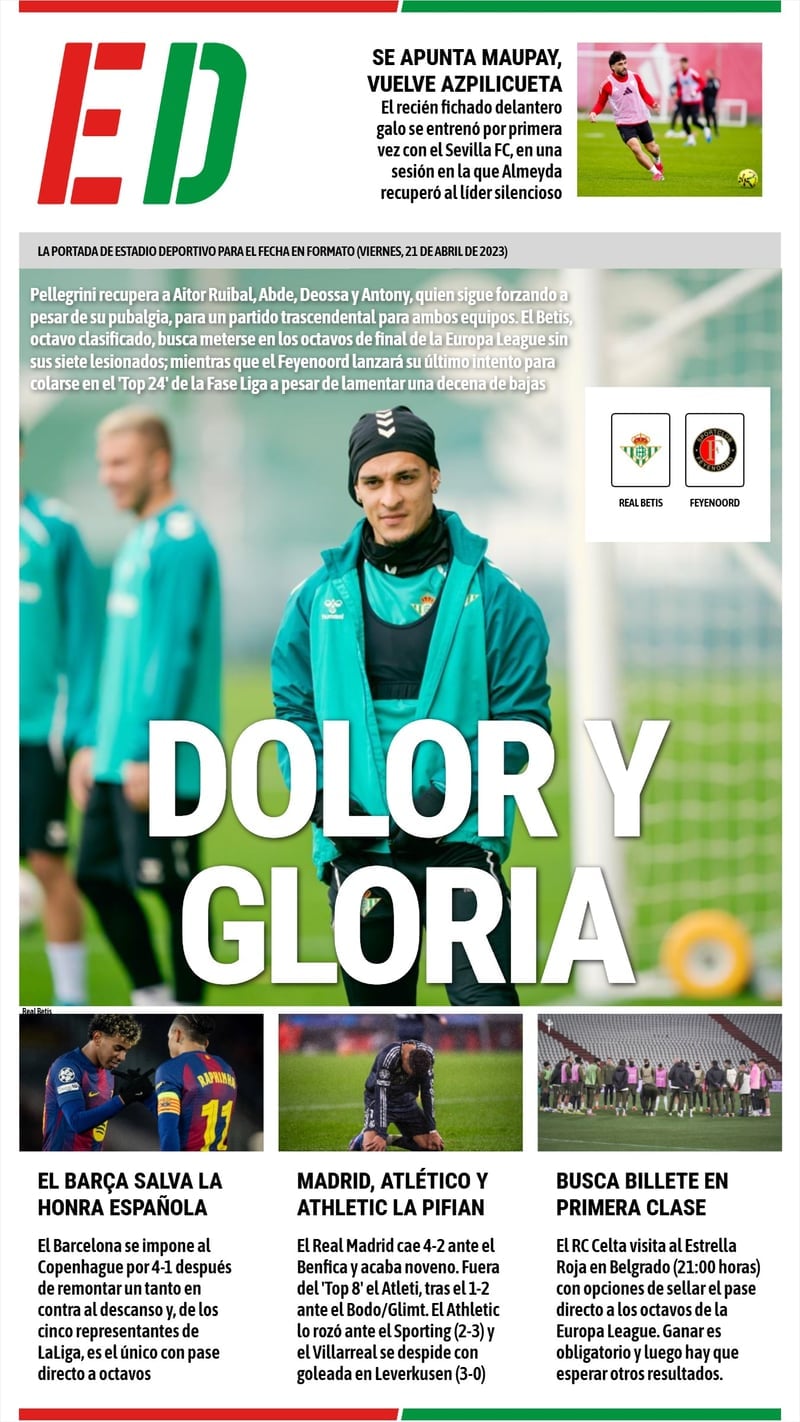 En ESTADIO Deportivo hemos abierto con la previa de la Europa League, donde el Real Betis se enfrenta al Feyenoord para terminar de sellar el pase a las eliminatorias como uno de los ocho primeros clasificados. El conjunto de Pellegrini recuperar a diversos jugadores, como Ruibal, Abde, Deossa o Antony para, apoyado en su afición, no pasar apuros ante el conjunto neerlandés que quiere colarse entre los veinticuatro clasificados.