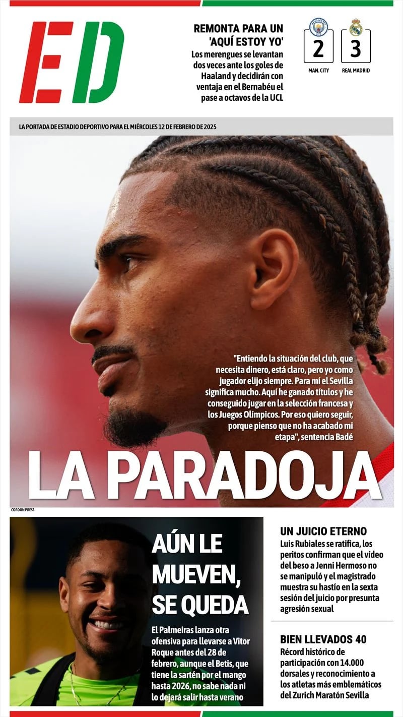 Desde ESTADIO Deportivo, además de hablar de la victoria del Real Madrid, Loïc Badé es el principal protagonista. El francés entiende la situación del Sevilla FC, pero como futbolista también quiere un buen contrato. Por otra parte, Victor Roque no se mueve del Real Betis a pesar de una nueva ofensiva del Palmeiras.