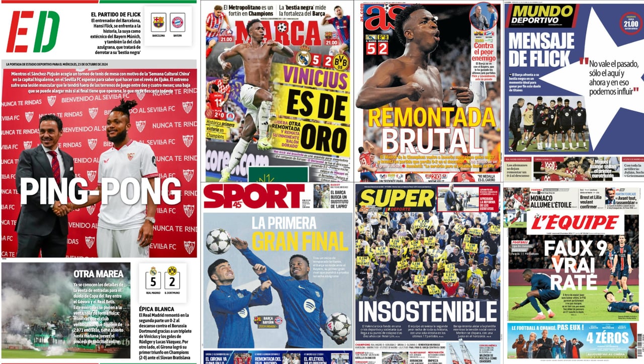 Vinicius tira de remontada, la primera del Girona en Champions, LeBron James… así vienen las portadas