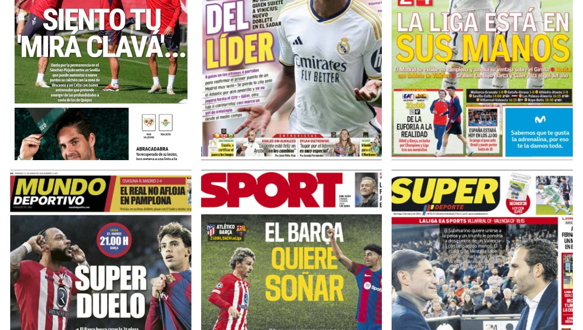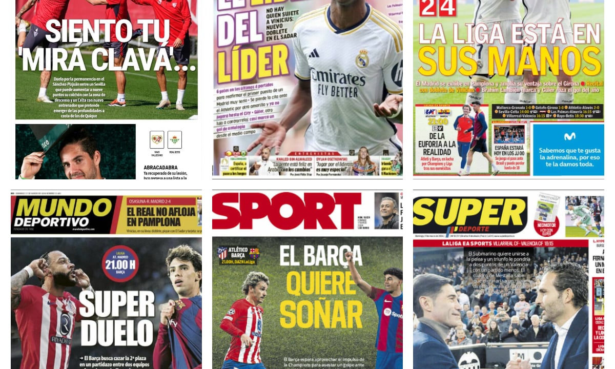 En cuanto a las cabeceras nacionales, como se ha mencionado anteriormente, Vinicius y Joao Félix copan la actualidad de los principales medios deportivos. Sobre el brasileño, Marca abre con el titular ‘El líder del líder’, destacando la gran actuación del punta merengue. En cuanto a As, la foto de portada va dedicada tanto al atacante como a Brahim, y titulan con la frase ‘La Liga está en sus manos’, destacando la relevancia que tienen ambos para el Real Madrid.