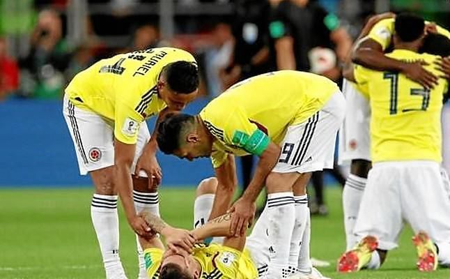 Colombia, con su estrella lesionada en la grada, fue muchos minutos un equipo plano, que sucumbía a una decisión arbitral, sin soluciones para zafarse de la trampa inglesa.