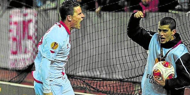 Kévin Gameiro celebra un gol ante los sevillistas. - Enrique García