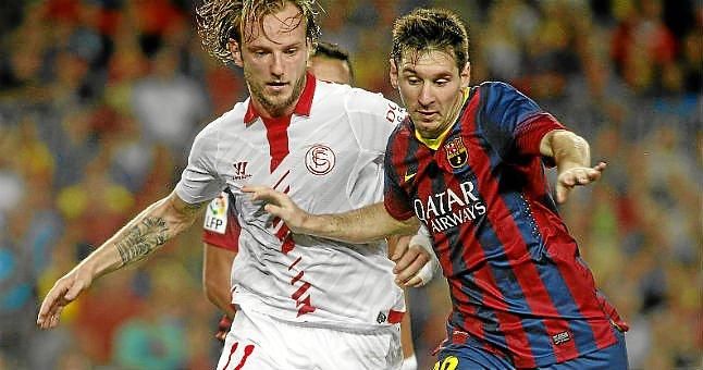 Rakitic, en un lance con Messi del Barcelona-Sevilla.Redacción