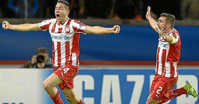 Manolas (izquierda) celebra un gol conseguido ante el PSG en Liga de Campeones.Alejandro Sáez