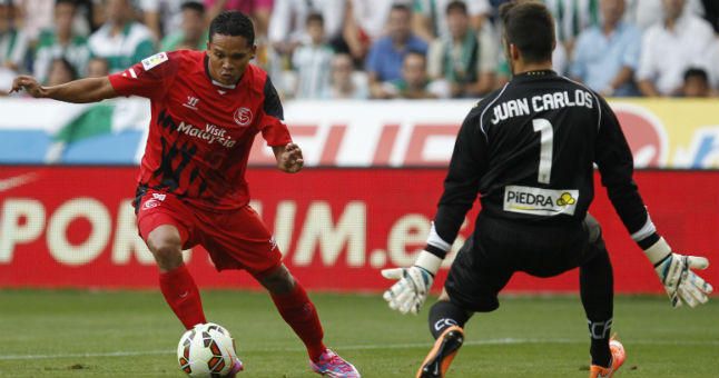 Con sus dos dianas ante el Córdoba, Bacca suma ya cuatro en las cuatro primeras jornadas de Liga, tras sus tantos en Cornellá y frente al Getafe, también de penalti; un hito que en los últimos tiempos sólo han conseguido con la zamarra blanquirroja mitos como Davor Suker o Frédéric Kanouté.