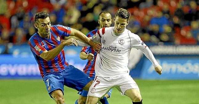 21' Dos córners para el Levante que saca el Sevilla con la cabeza...