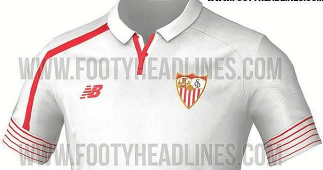 Aún no se conoce oficialmente la nueva camiseta que New Balance está diseñando para el Sevilla de la temporada 2015/2016 pero son ya varios los diseños, todos muy parecidos, los que se han filtrado hasta hoy. El último, según la web 'footyheadlines.com', la primera camiseta del Sevilla sería como la que están viendo en la fotografía.