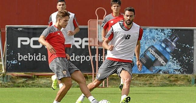 La plantilla del Sevilla ha vuelto a los entrenamientos por segundo día consecutivo tras las vacaciones estivales. La sesión preparada por Emery ha sido muy física, como acostumbra en pretemporada. Primero, sesión de gimnasio y luego trabajo con el balón sobre el césped. Por último, los jugadores realizaron carrera continua en una pequeña 'paliza' física.
