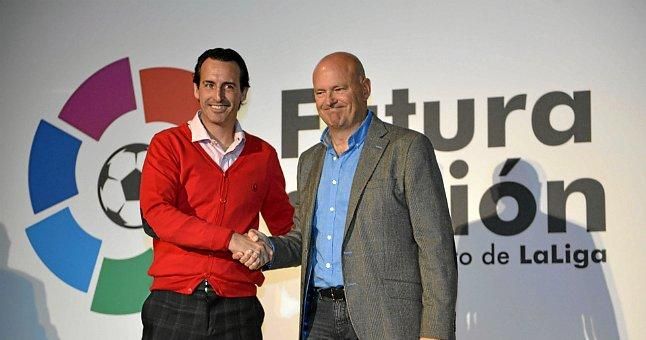 El técnico del Sevilla Unai Emery participó esta mañana junto a otros integrantes de su club y del Real Betis en un acto de la LFP, la tercera jornada de 'Futura Acción'. Emery estuvo con los alumnos de un colegio sevillano al que también acudieron los presidentes de la Liga de Fútbol Profesional (LFP), Javier Tebas, y del Sevilla, José Castro, el vicepresidente del Betis, Ángel Haro, así como el jugador bético Joaquín Sánchez y el sevillista José Antonio Reyes.