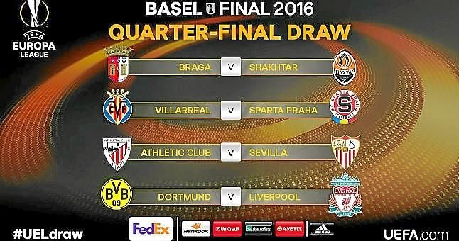 El resto de emparejamientos son: Borussia Dortmund-Liverpool, Villarreal-Sparta Praga y Braga-Shakhtar.