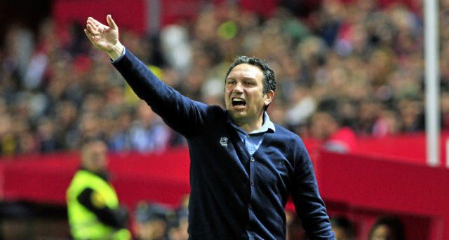El entrenador de la Real Sociedad, Eusebio Sacristán, se mostró muy feliz tras ganar 1-2 al Sevilla, que llevaba diecisiete triunfos seguidos en su campo, y dijo que "es una victoria con mayúsculas por la solidaridad, el compromiso y trabajo de equipo" que demostraron, aunque rechazó que ya estén salvados.