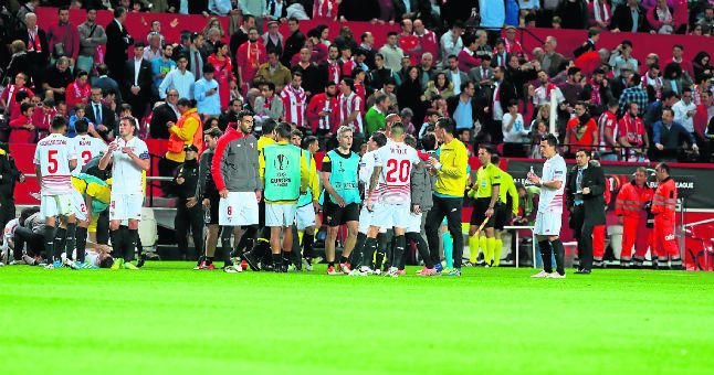 El Sevilla lleva 54 partidos y, con las ´semis´ ante el Shakhtar, las cinco últimas jornadas de Liga y la final de Copa, alcanzará como mínimo los 62 que jugarán Athletic y Barcelona.A. Torvisco / F. Mateos