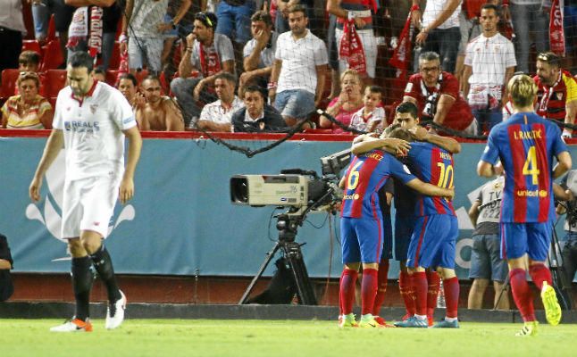 Un equipo no se hace en un mes. Más cuando las ideas son completamente diferentes a lo anterior. Cuando prácticamente hay que partir de cero. El Sevilla de Sampaoli continúa en construcción y el Barcelona se lo ha hecho pagar con un 0-2 en la ida de la Supercopa de España que deja el título en bandeja para los azulgranas. Con todo, los nervionenses dejan un primer acto para la esperanza, pues salvo el susto inicial de Luis Suárez tuteó al Barcelona y se asomó con peligro al área de Bravo. En el debe, que llegó al descanso sin ningún tiro a puerta que llevarse a la boca.