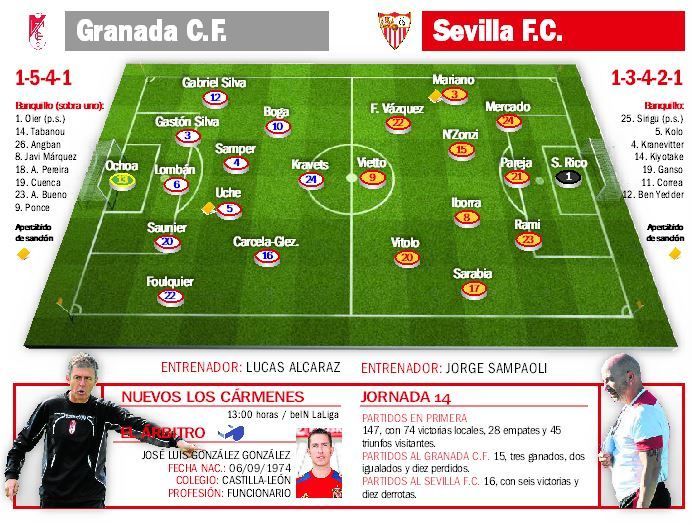 A priori, antes que poner a Kolo, el casildense se decantará por una defensa de tres dejándole toda la derecha al recuperado Mariano y la izquierda a Sarabia y a Vitolo. Será importante saber si Alcaraz contrarresta 'indultando' al castigado Cuenca para hacer de carrilero y castigar las subidas de los sevillistas; lo que ofrece la segunda duda: quién acompaña a N'Zonzi en la medular. Los centímetros de Iborra, la colocación de Kranevitter o la magia de Ganso.