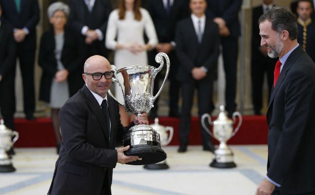 El entrenador atendió a la prensa tras recibir el Trofeo Comunidad Iberoamericana durante la entrega de los Premios Nacionales del Deporte, reconociendo que este galardón y el gran momento del Sevilla "son dos cosas que van unidas". "La verdad que estoy muy emocionado por recibir este premio", dijo el técnico, que pudo departir con el Rey Felipe VI.