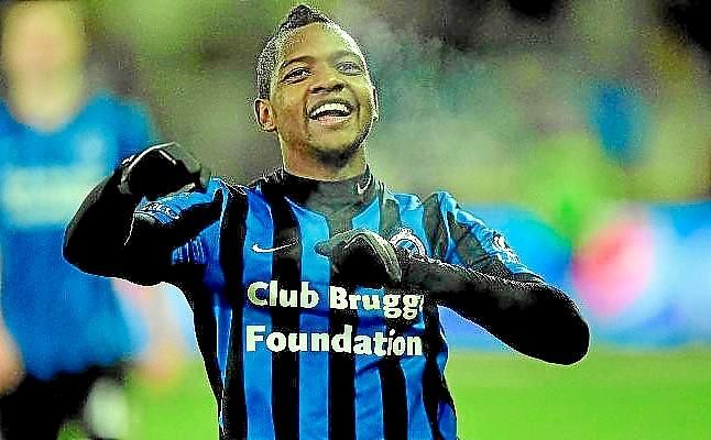 Izquierdo celebra un gol con el Brujas belga.F. M.