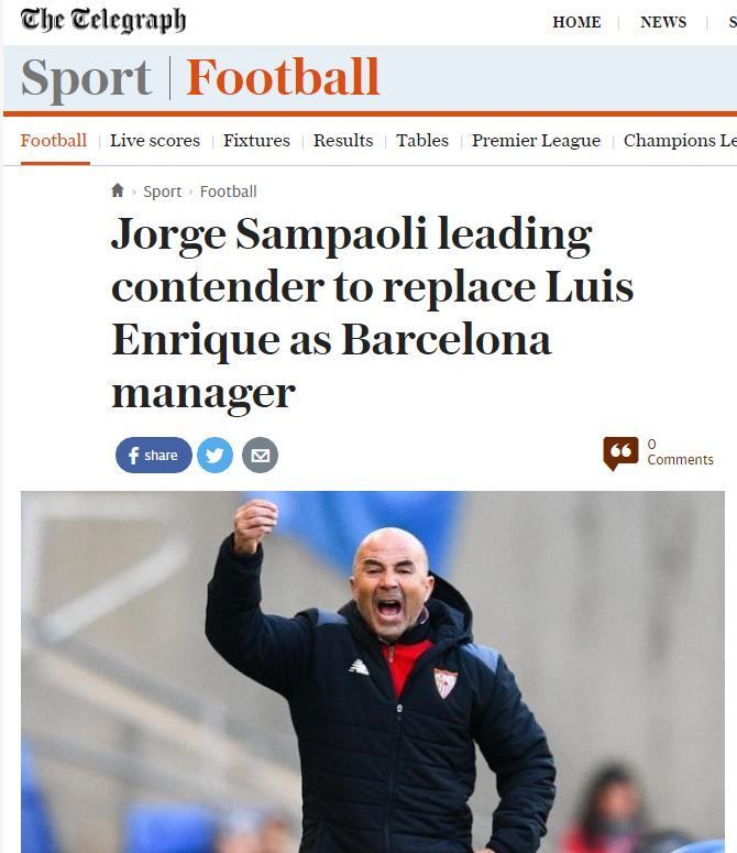 la temporada de Jorge Sampaoli al frente del club de Nervión no está pasando desapercibida. Con el equipo en tercera posición en LaLiga y en octavos de Champions, el técnico argentino sería la principal opción para el banquillo azulgrana la próxima temporada, según informa hoy The Telegraph.