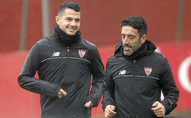 El Sevilla sigue preparando su visita a Mendizorroza del próximo lunes con la mirada puesta en Vitolo. El sevillista, que se perdió el partido ante el Athletic Club, ha vuelto a ejercitarse al margen de sus compañeros aunque ha tocado algo de balón.