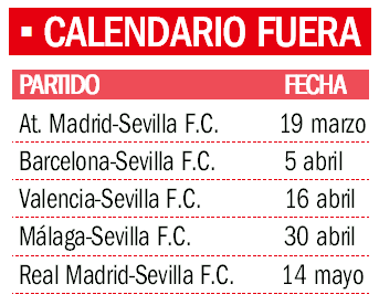 Cinco duros huesos que el Sevilla, eso sí, afronta con el optimismo de sus números como visitante: 25 puntos en 14 partidos. Y es que sólo Barça (30) y Madrid (26) han sumado más fuera, si bien la Real Sociedad, con 24 en 13 choques, presenta una mejor media.