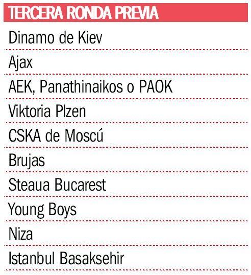 Este fin de semana, además, ha servido para seguir aclarando el resto de posibles adversarios blanquirrojos. En la República Checa, el Viktoria Plzen ha visto cómo el Slavia de Praga no fallaba en la lucha entre ambos por el título liguero y ha acabado segundo, misma posición ya confirmada en Turquía para el Istanbul Basaksehir, pues el Besiktas ya es campeón, aunque aún falta una jornada. Con ellos en el bombo, sólo resta por conocerse, por tanto, al representante de Grecia, donde queda una fecha para que finalice la liguilla que reparte los puestos europeos, con opciones para tres de sus cuatro participantes: el AEK de Atenas de Jiménez, el Panathinaikos y el PAOK de Salónica.