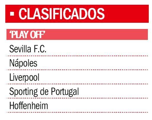 Blanquirrojos y ‘azzurri’, sin embargo, no podrán verse las caras, al partir como uno de los cinco cabezas de serie, al igual que el Liverpool, algo que no sucede en el caso del Sporting de Portugal y el Hoffenheim, que sí son dos de los posible rivales de los nervionenses. Los otros dos cabezas de serie, en estos momentos, son Dinamo de Kiev y Ajax, aunque ambos deberán disputar antes y superar la tercera ronda previa, en la que participan diez equipos, de los cuales accederán cinco al último ‘play off’. El gran rival que evitar entre ellos será, a priori, el Niza francés, que ya estaba clasificado junto al CSKA de Moscú ruso, el Brujas belga, el Steaua de Bucarest rumano y el Young Boys suizo.