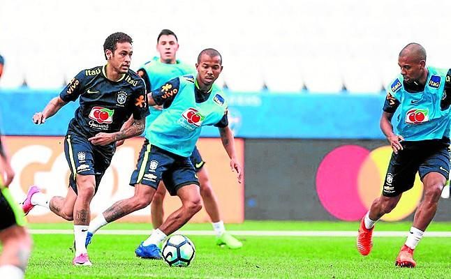 El sevillista Mariano Ferreira, entrenándose con la selección brasileña.A. Sáez