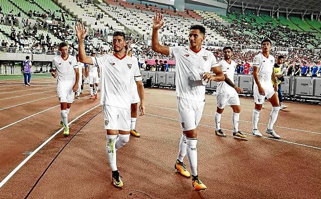 Ganso, junto a Escudero, en el partido ante el Cerezo Osaka.F. Ruiz