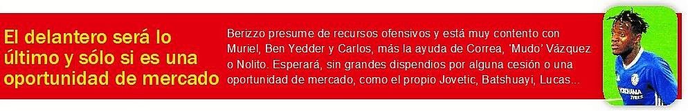 El Sevilla ha vuelto de la primera parte de la pretemporada con la necesidad de dar un acelerón a la planificación, sobre todo, si su idea sigue siendo la de contentar a Eduardo Berizzo. El 'Toto' aseguró en su presentación, el pasado 13 de junio, que lo ideal, a su juicio, sería que la plantilla estuviese cerrada en agosto, para llegar con plenas garantías a la previa de la Champions, que disputará a doble partido entre los días 15 y 23 de agosto.
