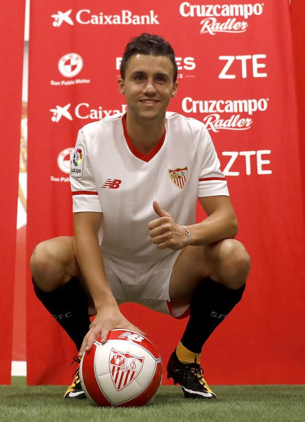 El defensor francés Sébastien Corchia ha manifestado hoy, en su presentación como futbolista del Sevilla, que "tenía muchas ganas de vestir la camiseta de un gran club" y que por eso se siente "muy feliz" por su fichaje para las próximas cuatro temporadas, hasta junio de 2021. Aquí os dejamos las imágenes de su presentación.