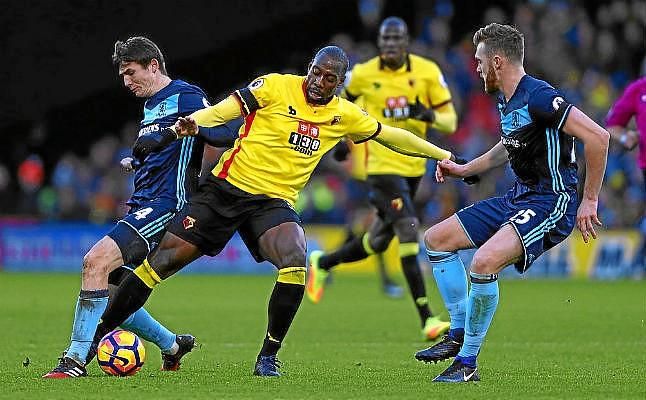 Okaka, en un partido de la Premier entre el Watford y el Middlesbrough.F.R. / A.S.