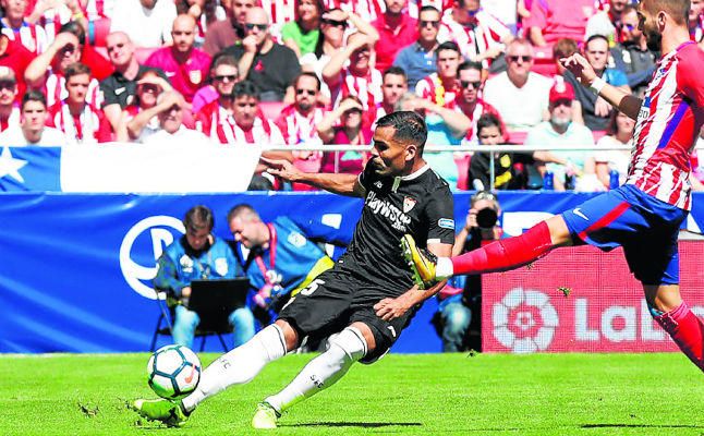 Ante otro rival, en distinto escenario, posiblemente al Sevilla le habría bastado con su puesta en escena en el Wanda Metropolitano, como ocurrió en la mayoría de partidos anteriores. Cada vez más ordenado, con líneas cohesionadas, con la intención de tomar la iniciativa y golpeando cuando, a través de la paciencia, se presentaba la oportunidad. Pero ante el Atlético, se necesitan más argumentos y, sobre todo, capacidad para desenvolverse en una situación adversa en la que prácticamente no existe un respiro. Ayer el Sevilla compitió contra el Atlético en su terreno, con una intensidad desconocida el curso pasado y con el concepto de bloque en un nivel muy avanzado.