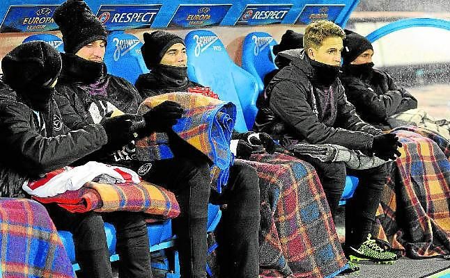 Rico, Reyes y Denis Suárez, en el banquillo del Sevilla en la visita al Zenit en la 14/15.R.S.