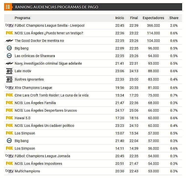 El épico partido entre el Sevilla y el Liverpool de este martes ha sido la emisión más vista de todo el día en la televisión de pago.