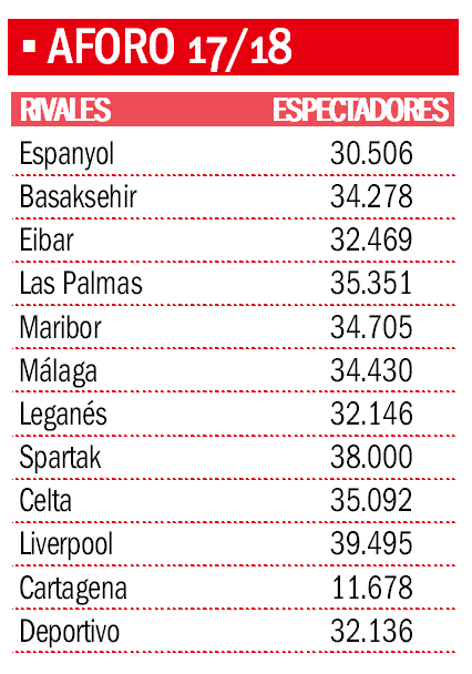 Y es que en Nervión son conscientes de los errores del pasado, habiendo malvivido la entidad décadas atrás por culpa de la losa a cargar que supuso la construcción del Sánchez-Pizjuán, un estadio que, en boca de José Castro, se consiguió cerrar gracias a la ayuda de los socios, pero que nunca se acabó; algo que se está haciendo ahora, unos 60 años después de que fuera inaugurado.Posturas diferentes en torno a una misma realidad que parece estar más en consonancia con la idea del actual consejo de administración sevillista, pues la asistencia media de las dos últimas temporadas y de lo que corre de la actual campaña en LaLiga demuestra que es de 33.354 espectadores, siendo el aforo medio en lo que va de Liga de 33.161 asistentes, frente a los 32.975 de la 16/17 y los 33.927 de la 15/16, según datos confirmados por LaLiga; un 22% menos del aforo total, que actualmente es de 42.714 espectadores.
