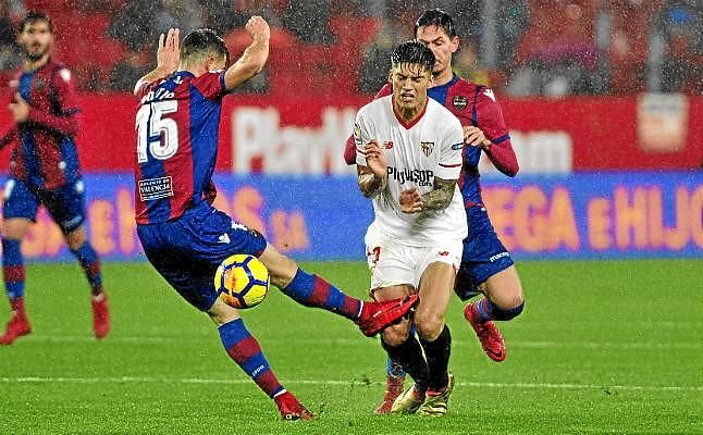 El Sevilla comenzó mandando sobre el campo, como acostumbra cada vez que juega en el Sánchez-Pizjuán, pero ese dominio con el balón no se tradujo en ocasiones de gol. No en vano, las dos oportunidades más claras de la primera parte fueron de los visitantes. Un Levante que llegó a Sevilla con la lección bien estudiada y que asfixió la sala de máquinas nervionense comandada por Banega y Ganso. Ni el argentino ni el brasileño encontraron fluidez en el juego.