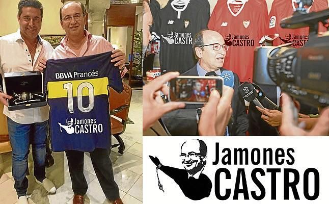 Jamones Castro es un proyecto ambicioso que el empresario utrerano no sólo pretende poner en órbita a nivel nacional, sino también en Europa y Suramérica. De hecho, para ello se valdrá de Boca Juniors como principal aliado. Conocida su buena relación con Angelici, presidente de Boca, Castro ha llegado a un acuerdo con éste para lucir sus jamones en la elástica 'xeneize'. Pagará parte de la esponsorización en especie.