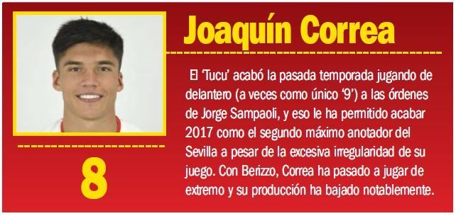 Cuatro tiene Muriel -el fichaje más caro de la historia de la entidad- y, ordenados de menor a mayor número de minutos jugados, están con tres Banega, Vitolo y Lenglet; con dos, Nolito, Pizarro y Escudero; y, con uno cada uno, Krohn-Dehli, Jesús Navas, Simon Kjaer y Mercado.