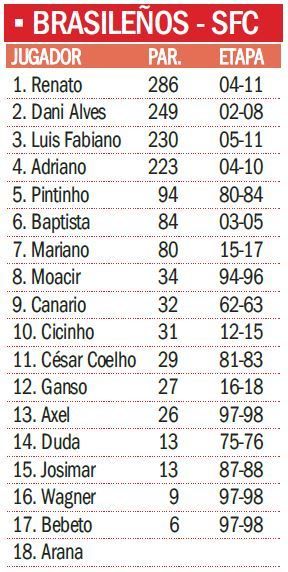 Con el joven lateral zurdo, que por fin llegó ayer a Sevilla, la brasileña es la quinta nacionalidad más repetida en la historia sevillista, después de (obviamente) la española, la argentina (36), la uruguaya (24) y la francesa (19).