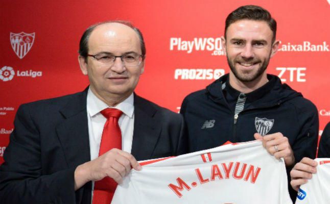 El lateral Miguel Layún, cedido con opción de compra al Sevilla, quiso zanjar la polémica sobre el interés del Betis y su incorporación final al conjunto blanquirrojo, declarando en la rueda de prensa de su presentación que "estoy donde quiero estar".